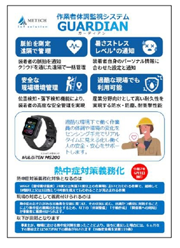 熱中症指数と連動し、現場の危険度をリアルタイムで可視化・通知する工事現場向けIoTサイネージシステムです。
